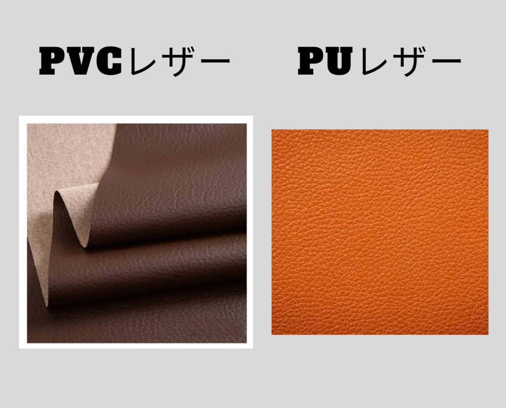 この素材にはいくつかあり、ポリウレタン(PU)・塩化ビニール(PVC)が使われています。