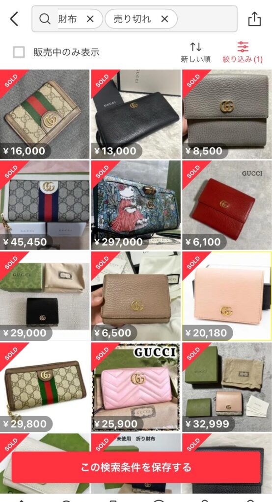 今度は『グッチ マーモント 財布』というように名称も入れて検索してみましょう。