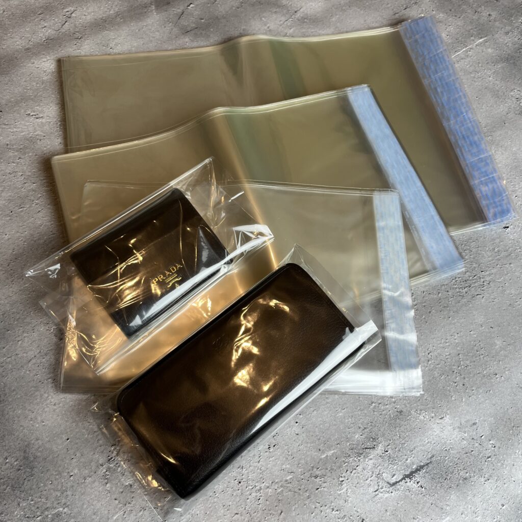 財布を入れる際に使用する袋です。OPP袋(オーピーピー)といいます。