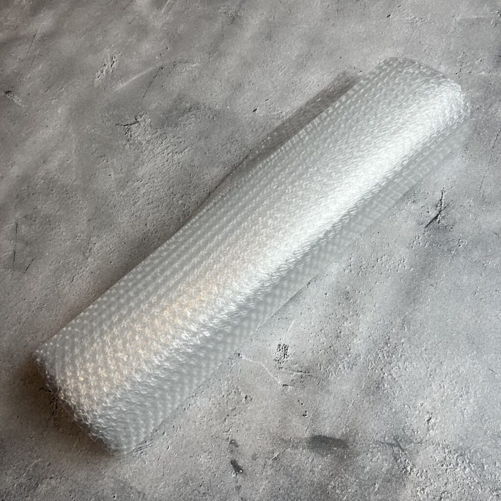 プチプチは100均で販売されているロールタイプの物を使用しています。100均ショップですが価格は220円です。(2024年8月1日現在)
