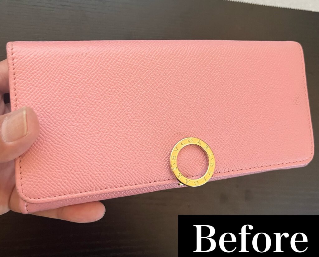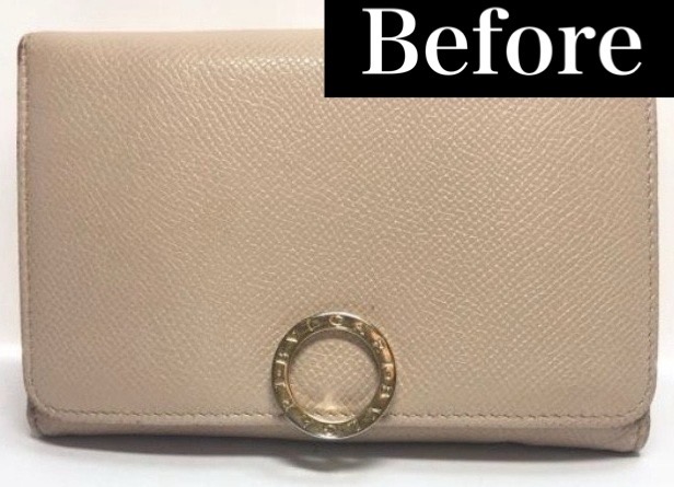 BVLGARIの財布です。過剰な汚れダメージはありませんでしたが、ブラックリカラーを施すことでしっかり利益を得られました。クリーニングの時点でもそんなに時間はかかりませんでしたので比較的、短時間で終了しました。